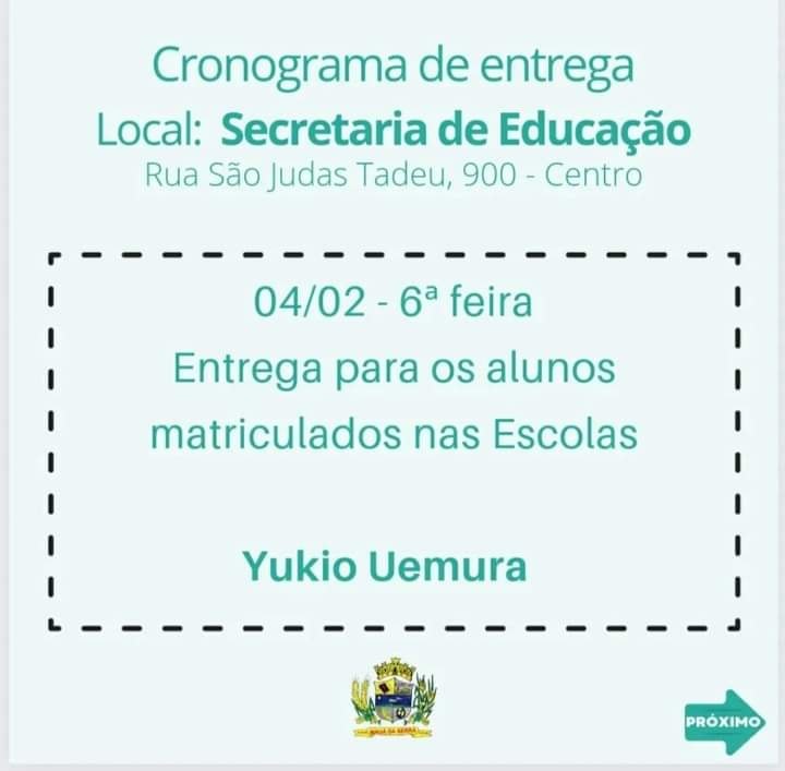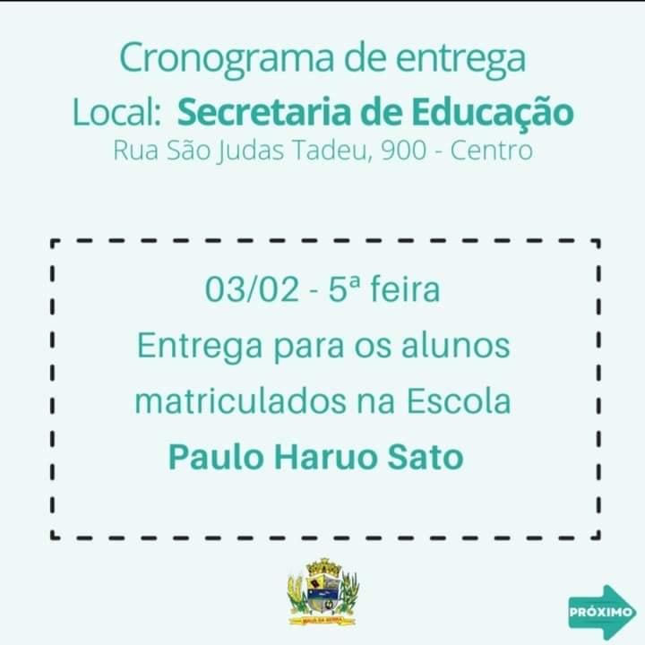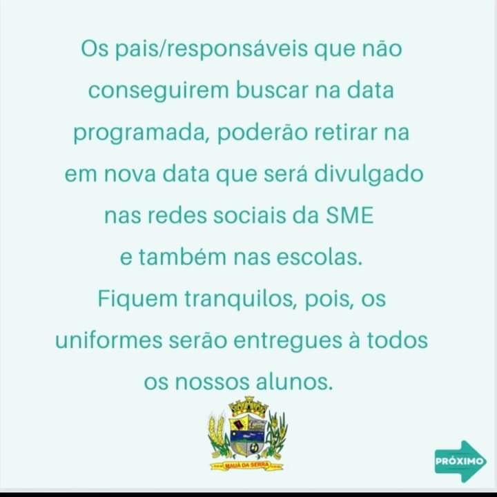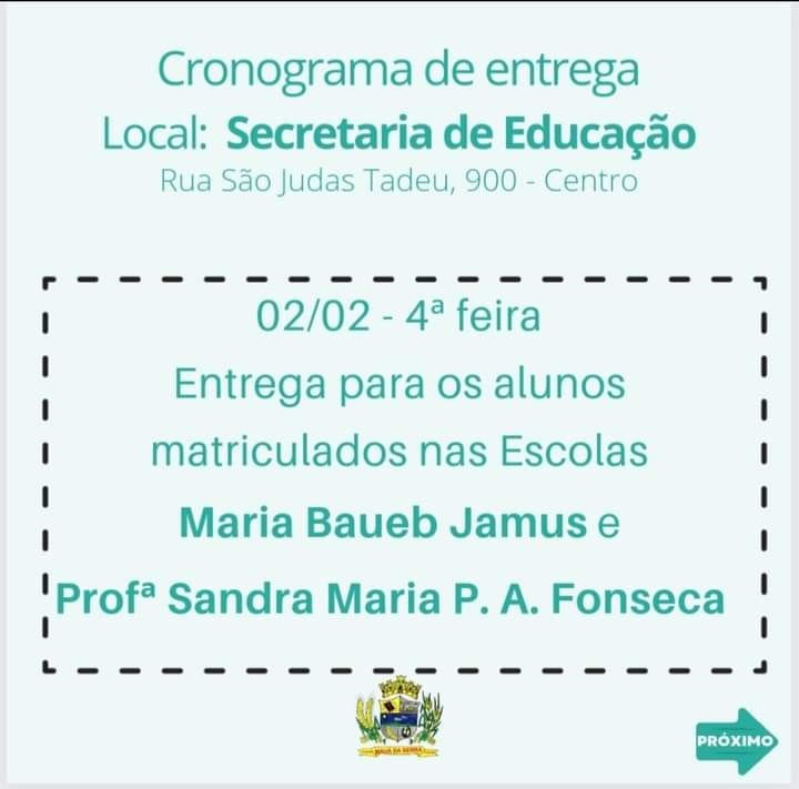 Fiquem atentos ao cronograma de entrega do uniforme que sera entregue na Secretaria de Educação